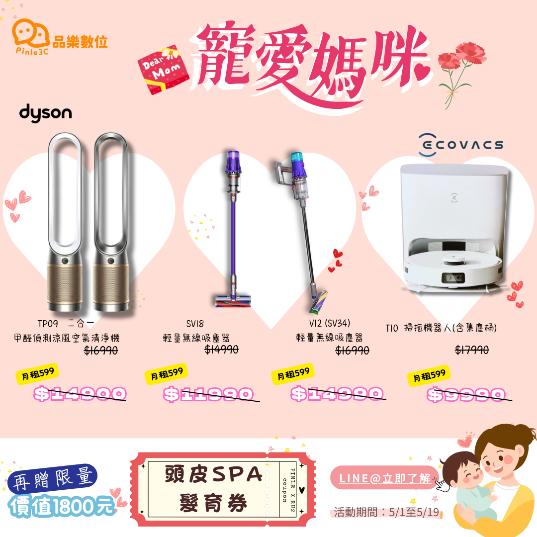 | 媽媽專屬 寵愛企劃 ✪ ω ✪ #門號續約換戴森吸塵器#門號續約換空氣清淨機#門號續約換打掃機器人